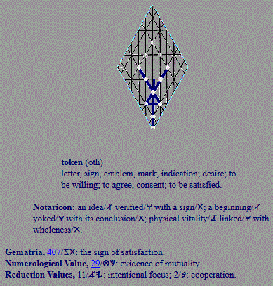 token; letter, sign, mark, emblem, desire; to be willing |