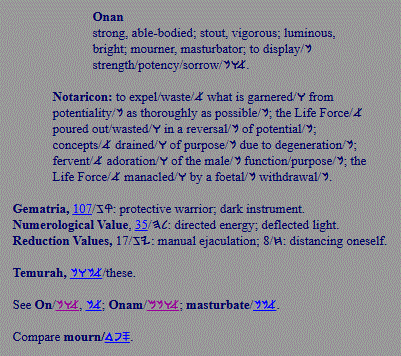 | Onan; suicidal; wastes opportunities to renew life |