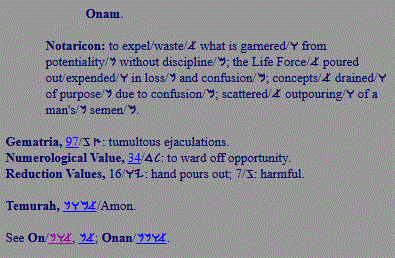 On, Aven; sorrow, grief, vanity; potency, wealth |