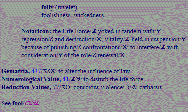 | folly; foolishness, impatience, wickedness |